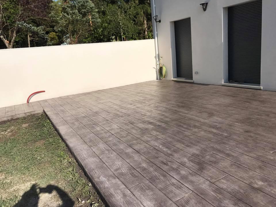 Pour un rendu plus chaleureux, optez pour un béton coloré pour terrasse ou un béton imitation bois, deux finitions très appréciées pour leur aspect naturel et contemporain.
