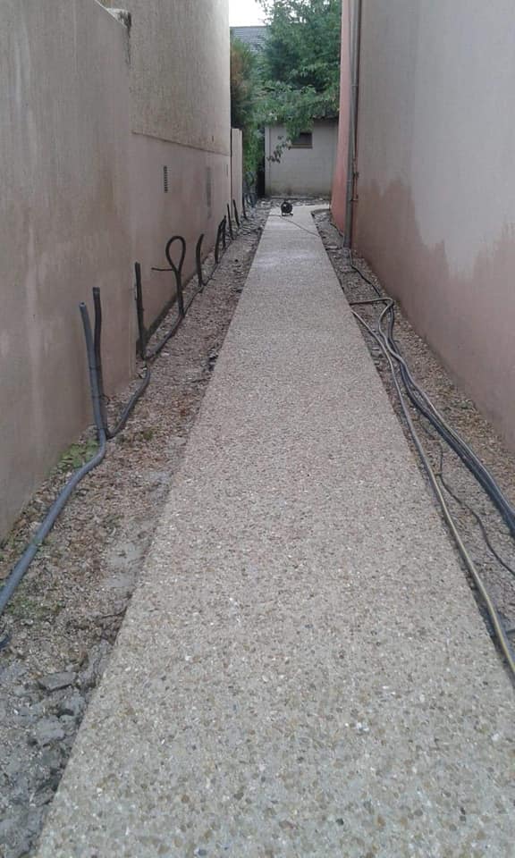 Nous réalisons des cours béton et des allées béton résistantes aux passages répétés, tout en apportant une touche soignée à vos extérieurs.