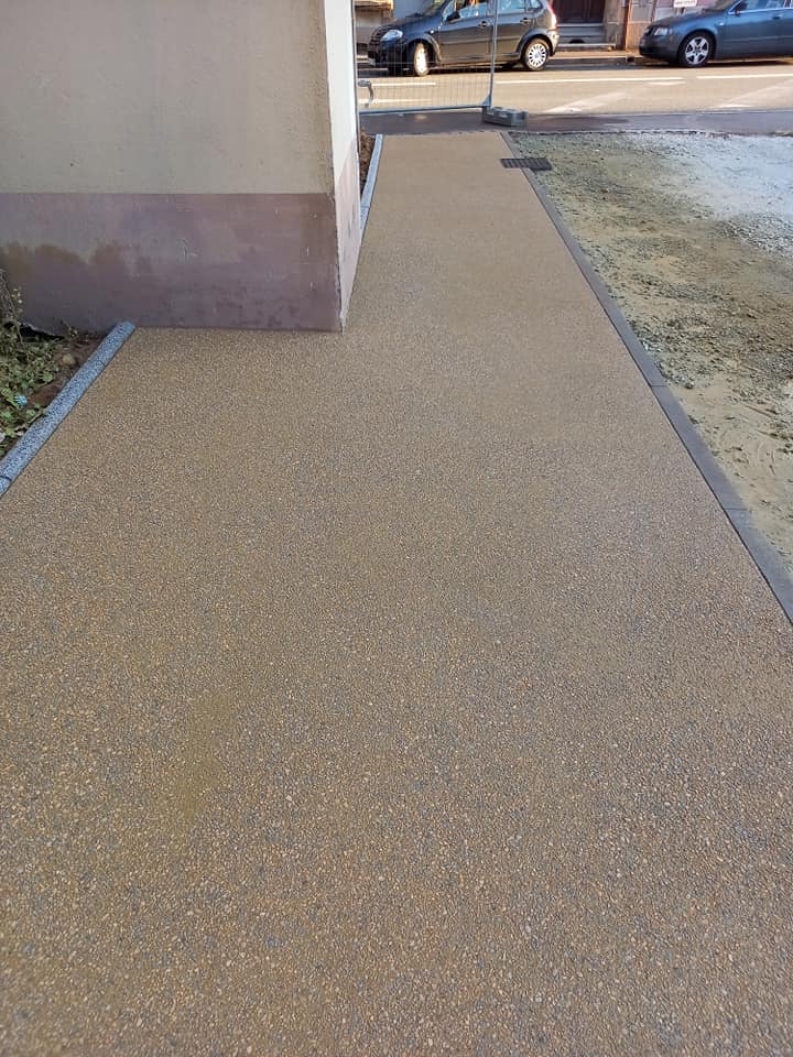 Le béton désactivé séduit par son aspect naturel et son excellente résistance aux intempéries. Grâce à un procédé qui met en valeur les granulats de surface, il offre une texture unique et un rendu élégant.